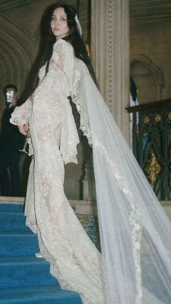 Хлое Севиньи покорила наши сердца кутюрным платьем творчества Гленна Мартенса для Gean Paul Gaultier с пышными воланами, которое она вскоре сменила на мини от Loewe со шлейфом, а затем и кастомным кружевным комбинезоном Mugler. В руках актриса держала самый стильный букет этого года — из калл, перевязанных атласной лентой. Мужем Хлое стал арт-директор галереи Karma Art Синиша Макович, с которым она обручилась еще два года назад, но коронавирусная пандемия не позволила тогда паре сыграть свадьбу.