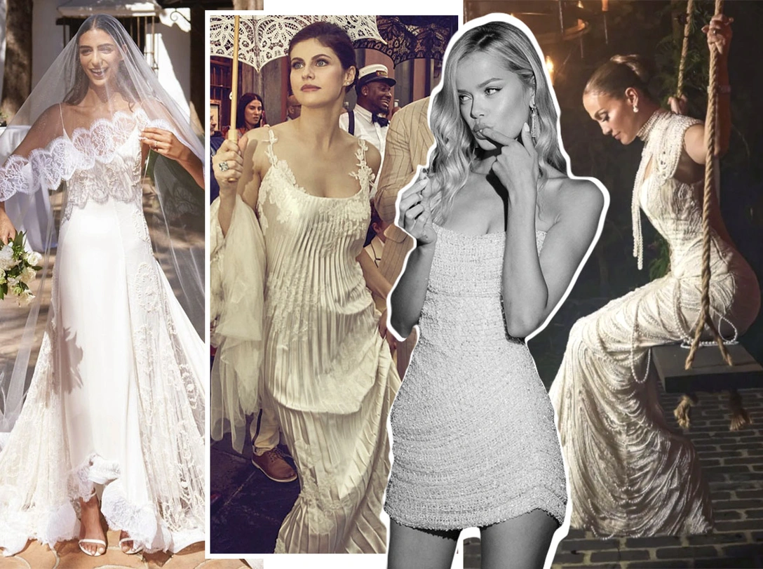 Весь год мы наблюдали за свадьбами знаменитостей, сезон которых открыла пара Николы Пельтц и Бруклина Бекхэма. Современные невесты оказались утонченными, нежными и смелыми: девушки наряжались в белоснежные платья своей мечты и экспериментировали с нарядами. В 2022 году многие знаменитости отошли от канонов традиционного свадебного наряда и вышли замуж в комбинезонах, костюмах и простых, но невероятно красивых платьях. Какие звездные невесты нас удивили и вдохновили — смотрите в нашей подборке.