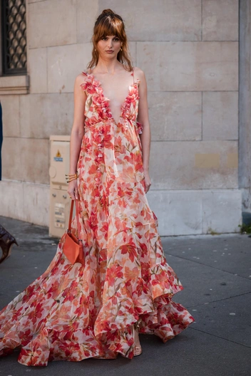 Длинные платья с нежным цветочным узором и разрезами по бокам созданы для знойного лета и романтичных прогулок. Создать правильный образ помогут акварельные оттенки и цветы, почти сливающиеся с общим фоном ткани. А вот гжельских мотивов, как и узор «турецкий огурец», стоит избегать — они уже несколько лет как утратили свою актуальность.