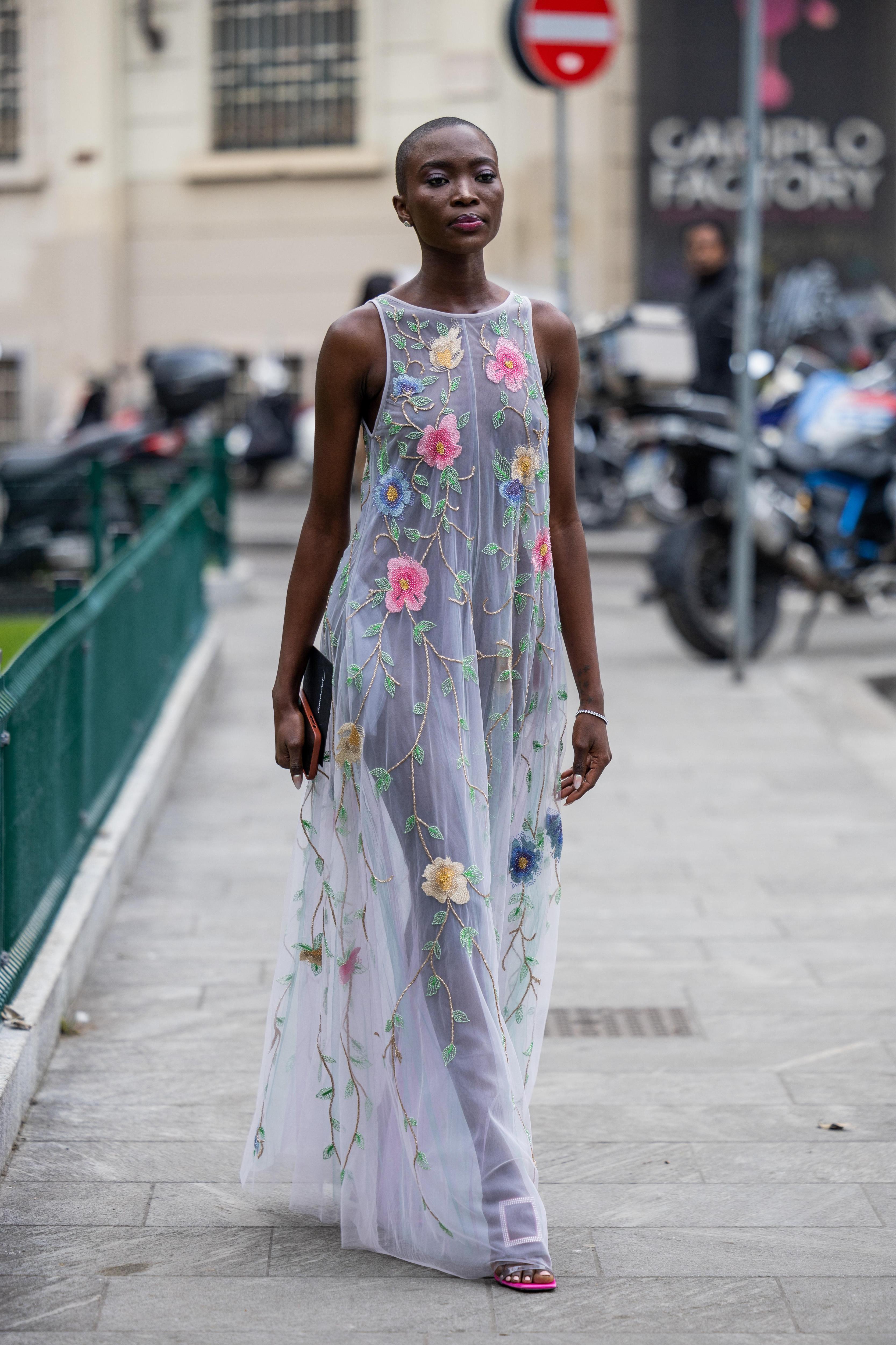 Еще одна причина популярности «голых» платьев — возможность играть со слоями и текстурами. Чтобы создать стильный образ, который будет привлекать восхищенные взгляды окружающих, выбирайте комфортный для вас баланс обнаженности. Платья, созданные из тонкой вуали шифона с декором из нежных цветов, можно носить как под боди, так и с нижним платьем-комбинацией (читайте также: Покупать запрещено: 6 пар обуви, которые нельзя покупать на распродажах — потратите деньги зря).