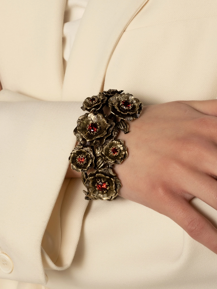 Прощаться с летом будем нескоро: дизайнеры решили сделать цветы важной частью своих осенне-зимних коллекций и поместили их в том числе и на украшения. Цветочные бутоны украшают серьги, колье, браслеты, кольца и броши. Креативные директора марок обратились к цветной эмали для создания ярких и реалистичных цветочных композиций, а также использовали драгоценные металлы, которые превратились в цветочные бутоны. Такие украшения так хочется добавить к вещам из кожи и денима.