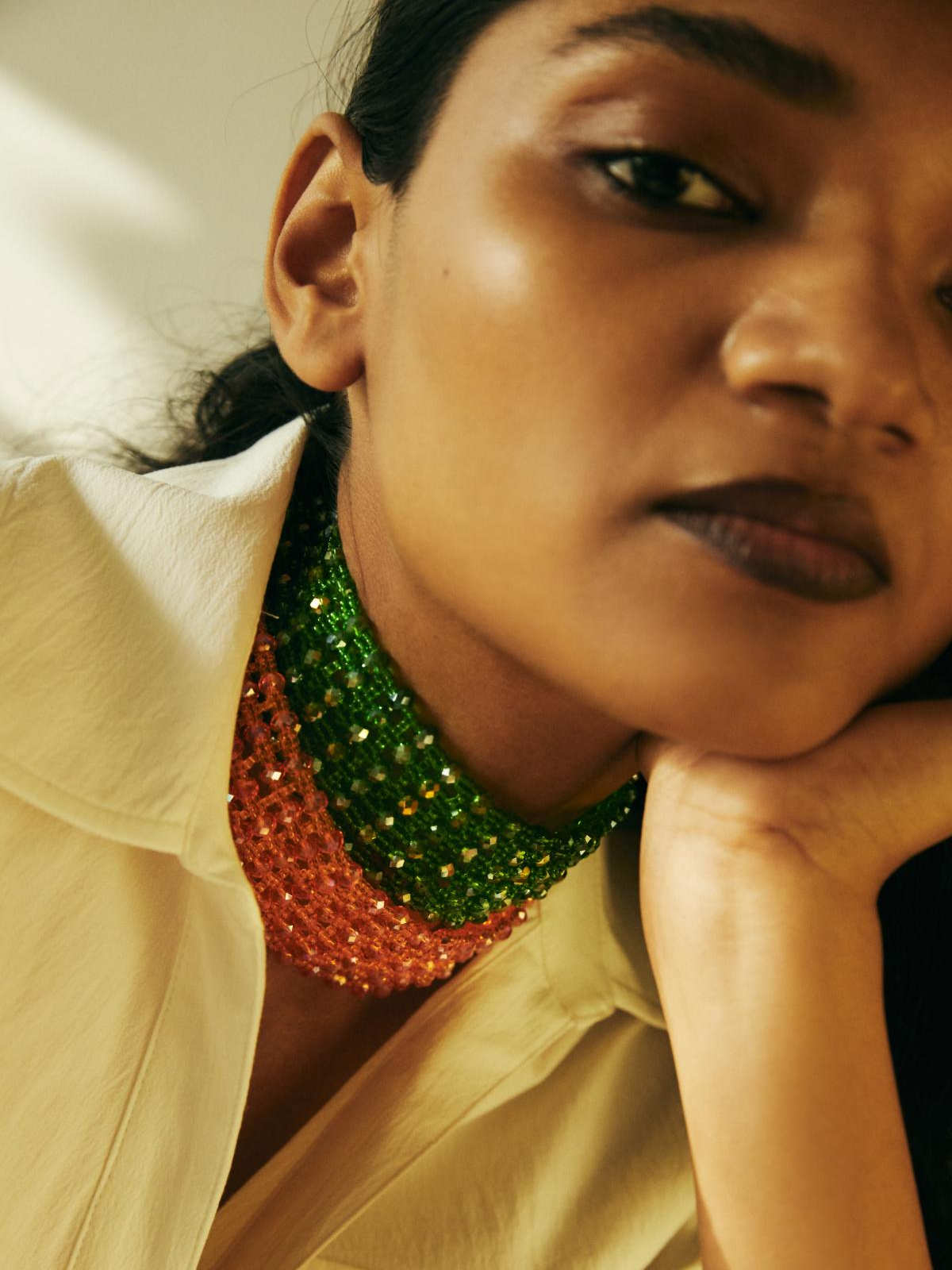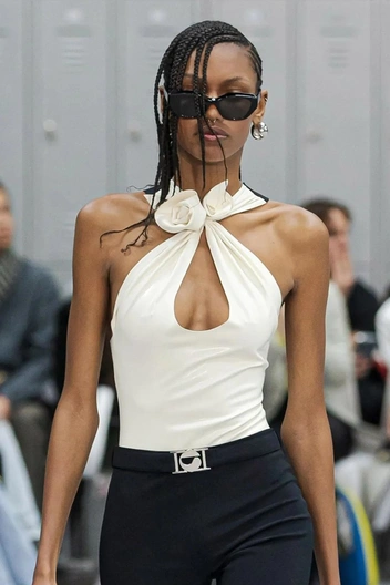 В моде правят девяностые и нулевые: в наш гардероб вернулись многие знаковые элементы прошлой эпохи, которые так гармонично вписываются в современные аутфиты. Осенью-2022 мы снова будем носить чокеры. По мнению креативных директоров модных марок, стоит сочетать сразу несколько чокеров в одном луке, комбинируя разные текстуры, цвета, размеры и материалы (читайте также: Беспощадный гламур: 10 трендов из 2000-х, которые актуальны снова).