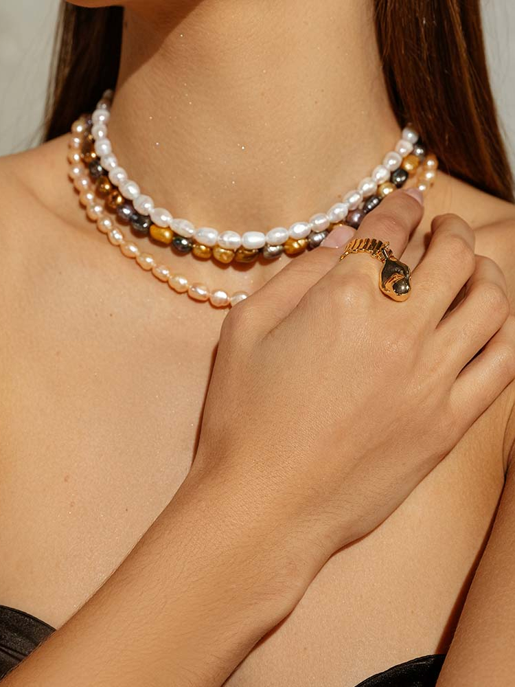 Жемчужные украшения в 2022 тоже выглядят иначе. Да, классическая нитка жемчуга все так же имеет место быть, но ее лучше сочетать не с классическими и женственными блузами, а с футболкой бойфренда или oversize-худи. Интересным дополнением к повседневным образам станут серьги с крупными жемчужинами или подвеска, которую можно носить самостоятельно или объединить в многослойный сет (читайте также: Как носить жемчуг и не выглядеть старомодно: 6 стильных способов).