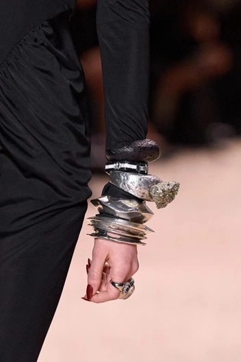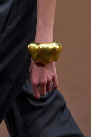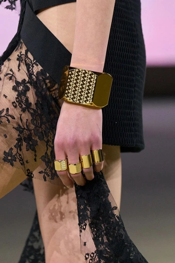 Важный тренд эпохи нулевых снова возглавляет списки модных тенденций. В 2022 году модные бренды вновь дополнили свои наряды крупными браслетами. Loewe, Versace, Balmain и Rick Owens показали свои вариации крупных аксессуаров, которые обязательно нужно носить поверх платьев и топов с длинным рукавом.