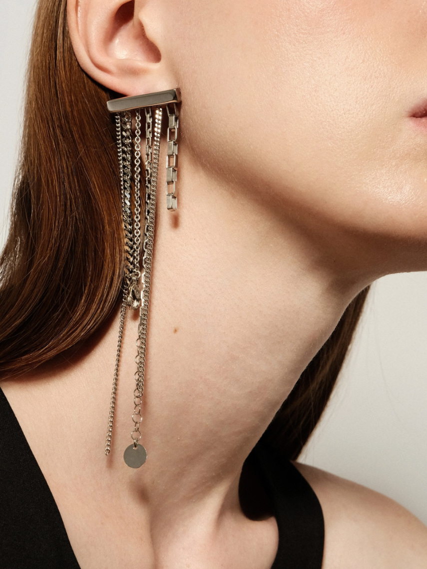 Акцентные и массивные украшения — один из важнейших трендов осенне-зимнего сезона 2022/23. Самый легкий способ сделать образ более интересным и сложным — добавить крупную моносерьгу. Это могут быть цветные модели или привычные украшения из золота и серебра. Моносерьга впишется к вечерний гардероб, так и в повседневные образы. Обращаясь к этому тренду, важно соблюсти баланс и подобрать в пару к такому украшению более минималистичные и лаконичные модели, например пусеты на другое ухо.