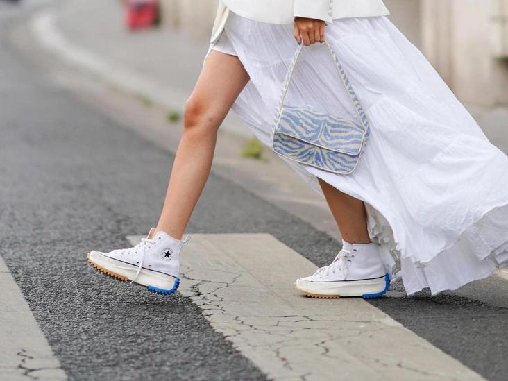Кроссовки уже давно стали частью базового гардероба всех девушек. На актуальные позиции цены часто кусаются, поэтому распродажа — отличный способ приобрести новую пару. Иногда хочется добавить цветовых решений в образ: кажется, приобрести яркие кроссовки — прекрасное решение, но мы скажем, что от покупки стоит воздержаться. Чересчур разноцветные, принтованные и металлизированные модели смотрятся устаревшими и портят аутфит. Более того, сейчас актуален минимализм: можно присмотреться к сникерам с небольшими цветными вставками, например, как у adidas Gazelle (читайте также: Самые модные кроссовки и кеды на весну 2024: от базовых до леопарда).