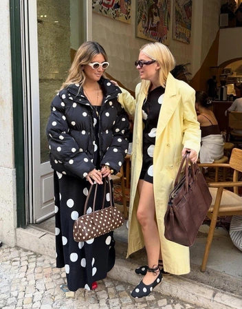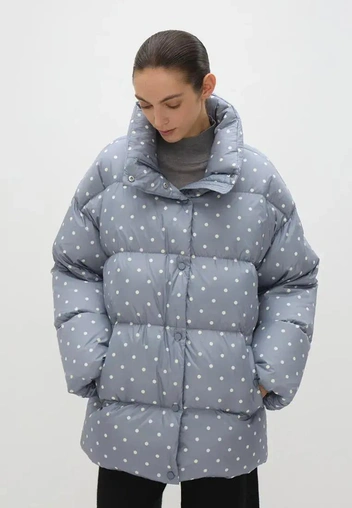 Куртка polka dot — идеальный вариант для многослойных зимних образов. Это тот самый случай, когда не надо бояться миксовать одинаковые принты: рифмуйте крупный горох на верхней одежде с мелким калибром горошка на юбках или свитерах — такой модной и смелой стилизации позавидуют даже западные инфлюенсеры.