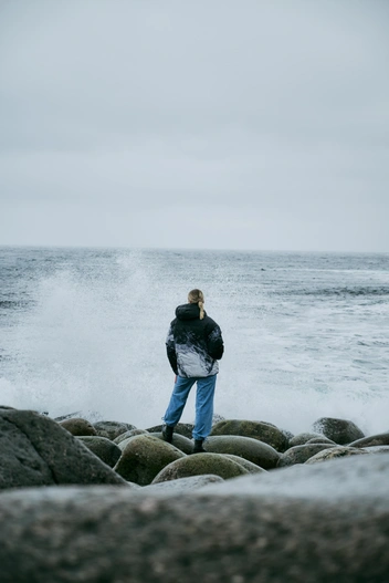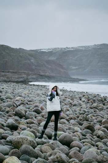 Шквалистый ветер, тяжелые капли дождя и морской холод оказались нам нипочем — третье испытание пуховиков Baon успешно пройдено. Сделав несколько фото на фоне многометровых волн, стоит отправиться к следующей точке — водопаду, который обрушивается с вершины отвесных скал прямо в открытое море.