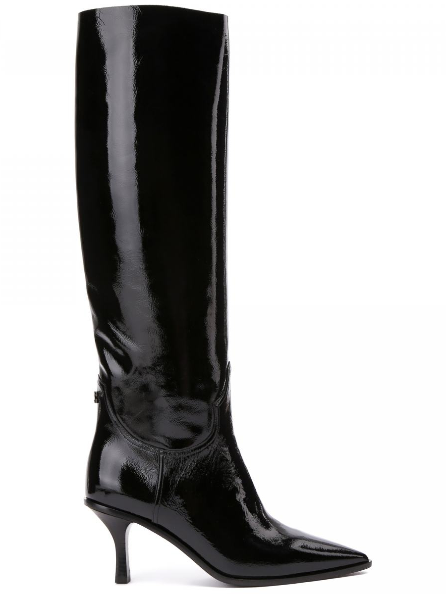 Прекрасным дополнением к трендовым трикотажным платьям, костюмам с юбкой или шортами, а также романтичным моделям с цветочным принтом, станут сапоги на каблуке. Дизайнеры вдохновлялись модой нулевых, а потому показали много версий с облегающим голенищем и острым мысом. Такие уже носят Хейли Бибер и другие fashion-инфлюенсеры, сочетая их с короткими платьями и юбками (читайте также: Беспощадный гламур: 10 трендов из 2000-х, которые актуальны снова).