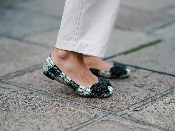В 2022 году в моду вернулись многие тренды гламурной эпохи. Среди вновь актуальных тенденций числятся и балетки. Эта лаконичная обувь прекрасно впишется в наряды в женственном стиле. Стоит отдать предпочтение классическим моделями с круглым мысом или более экспериментальным и современным с квадратным. В тренде классические черные, белые и бежевые пары (читайте также: Балетки: подлинная история самой популярной обуви (и как выбрать идеальные)).