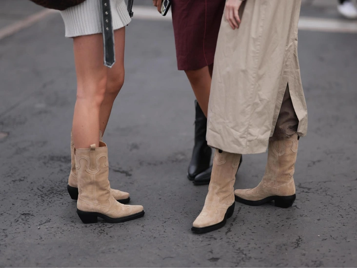 В прошлом сезоне замши было не так много, но с возвращением в моду бохо-шика вернулись и замшевые сапоги. Их мы заметили в коллекциях Chloé и Isabel Marant как главных брендов, прославляющих свободу, воздушность и легкость. Дизайнеры отдали предпочтение высоким ботфортам и ботильонам с широким голенищем и острым мысом. В тренде также остаются казаки и ковбойские сапоги со скошенным каблуком, которые так полюбились самым модным девушкам еще в прошлом году (читайте также: Не только черный: 7 самых модных цветов осени и зимы 2024/25)