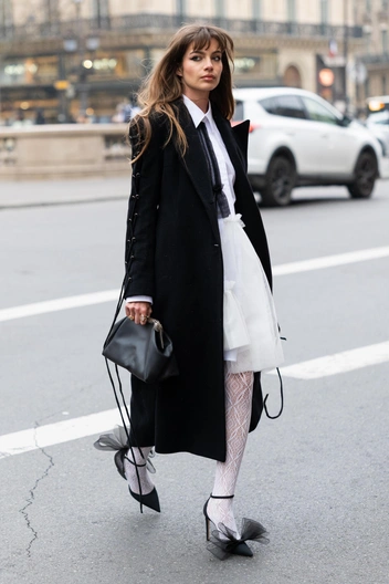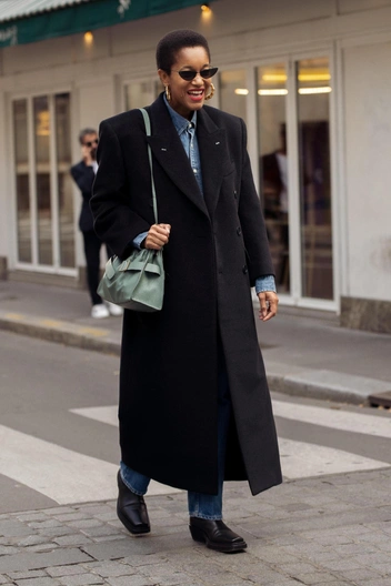 Еще одна версия пальто, перед которой невозможно устоять — пальто-пиджак мужского кроя, как у Miu Miu. Акцентные плечи, английский ворот, длинные рукава и спущенные швы могут превратить любой аутфит в самый модный. Носить его можно со всем, что есть в вашем гардеробе: макси-юбками, мешковатыми джинсами, скинни, мини-платьями.
