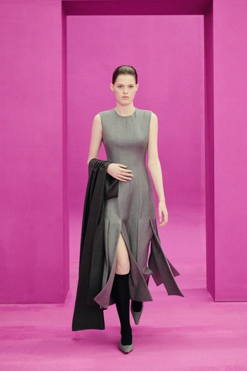 Всем, кто соскучился по офису, дизайнеры дают возможность окунуться в атмосферу доковидного делового центра с горячим кофе по утрам, ароматом свежераспечатанных документов и рабочей рутиной, свойственной многим компаниям. На подиумах и в новых лукбуках — торжество классических офисных платьев в самом тривиальном представлении. И чем «серее» и незаметнее они будут — тем лучше. Бренды определенно фантазируют на тему нового power dressing, но делают это необычно и свежо: к теплому варианту лаконичного кроя подбирайте металлизированные сапоги, переливающиеся на свету, а к платью-футляру с вырезами и бахромой — необычные гольфы (читайте также: Три золотых правила офисного дресс-кода).