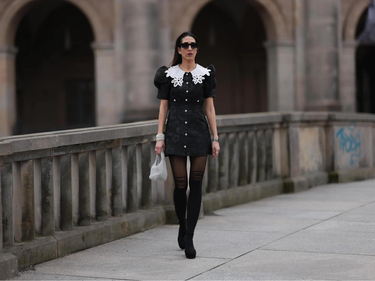 Этой осенью играем на контрастах: черные платья с нарочито наивными и кокетливыми белыми воротничками пригодятся и на учебе, и в офисе, и даже на вечеринке. Трендовые модели дополняют подчеркнутая линия талии, легкий объем в рукавах и акцентный воротник. С приходом холодов дополняем лук плотными черными колготками, сапогами-трубами с широкими голенищами и стейтмент-украшениями.