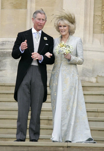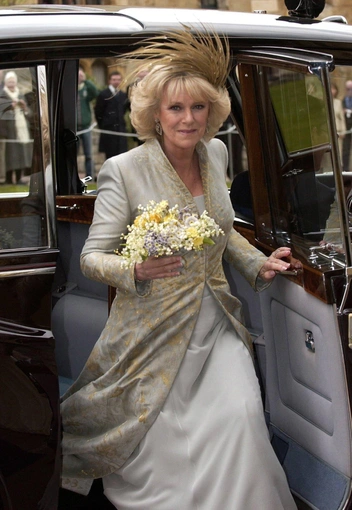 Свадебный наряд Камиллы Паркер-Боулз был великолепен и вполне в ее стиле. Для гражданской церемонии герцогиня выбрала белое платье чуть ниже колена прямого кроя, а для торжественной части предпочла светло-серый вариант с золотым напылением. Но вот загвоздка — в обоих случаях на голове невесты не было тиары.