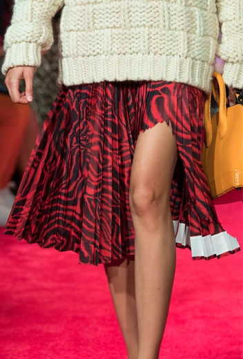 Наряду с привычными классическими вариантами миди на первый план вышли асимметричные и рваные юбки, как на показе Calvin Klein. За последние модницы и коллекционеры еще поборются: бренд объявил об уходе креативного директора Рафа Симонса и закрытии подиумной линейки, а поэтому вещи из культовой коллекции точно обещают стать хитами. Также советуем присмотреться к показу Fendi, который предложил классный вариант стилизации: плиссированную юбку с перфорациями бренд сочетает с прозрачной юбкой длины мини с металлическими кнопками.