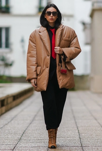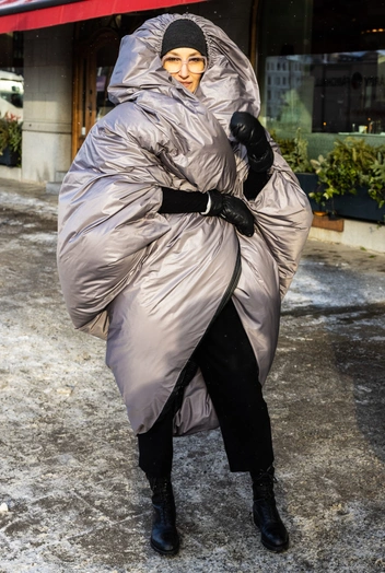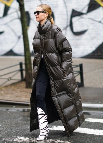 Монохромные, а также темные образы всегда визуально стройнят и вытягивают силуэт. Слишком контрастный пуховик по отношению к брюкам или обуви может разбить образ на части, что не всегда будет работать на вас.