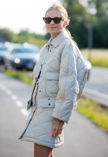 Глянцевые материалы визуально расширяют, тогда как матовые, наоборот, стройнят и вытягивают. Избегайте глянцевых поверхностях в слишком объемных пуховиках (читайте также: Гид по наполнителям для пуховиков: как выбрать самый теплый).