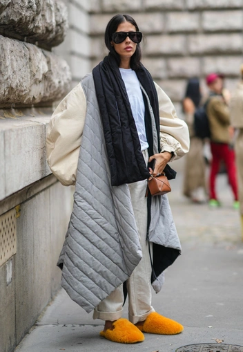 Выбирая верхнюю одежду фасона оверсайз, старайтесь подчеркнуть какую-то тонкую части вашего тела — изящные щиколотки или запястья (с помощью длины изделия и рукавов), талию (с помощью ремня или пояса), длинную шею (формой выреза). В противном случае вы рискуете прибавить несколько визуальных килограммов, а также значительно укоротить рост (читайте также: В полном объеме: как носить вещи oversize).