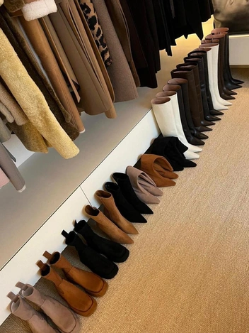Старшая сестра не отстает от Кайли и также является обладательницей завидной коллекции самой трендовой обуви. Если бы девушки устроили соревнование, определить победительницу было бы очень сложно, ведь пересчитать такое количество туфель и сапог почти невозможно. Ким Кардашьян часто посещает модные показы, на каждый из которых выбирает обувь брендов: лодочки Dolce & Gabbana, сабо Fendi и сапоги Mugler.