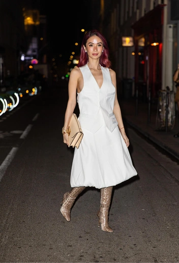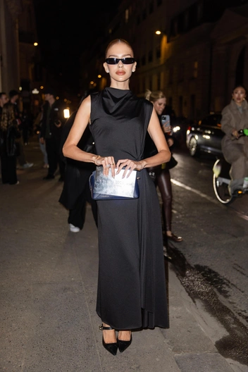 Звезда социальных сетей Джорданна Майя поразила поклонников роскошной фигурой в элегантном черном платье, излучая непринужденность в солнцезащитных очках и туфлях на каблуках в тон. Модель Стефани Гизингер, чтобы уж точно не остаться незамеченной, также выбрала одно из самых стильных платьев, так любимых Вики Бекхэм. Нежно-зеленое шелковое платье с черными ботильонами и сумкой на плечо — выбор Стефани на этот вечер.