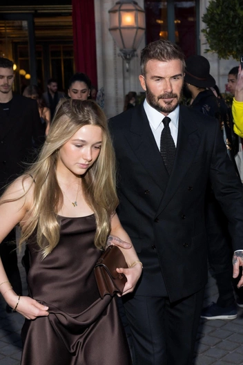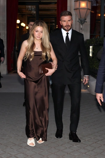 13-летняя дочь Виктории и Дэвида, Харпер Бекхэм, на показе блистала под руку с папой, будучи облаченной в коричнево-шоколадное платье маминого бренда. Наряд цвета мокко Харпер дополнила клатчем в тон и пушистыми белыми туфлями. Сам Дэвид, не отходящий от дочери ни на шаг, предпочел классический черный костюм (читайте также: «Две королевские семьи Великобритании: что на самом деле связывает Бэкхемов с Виндзорами»).