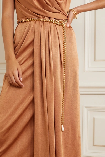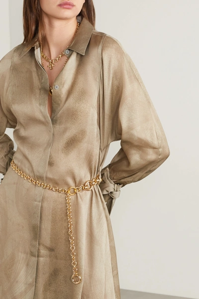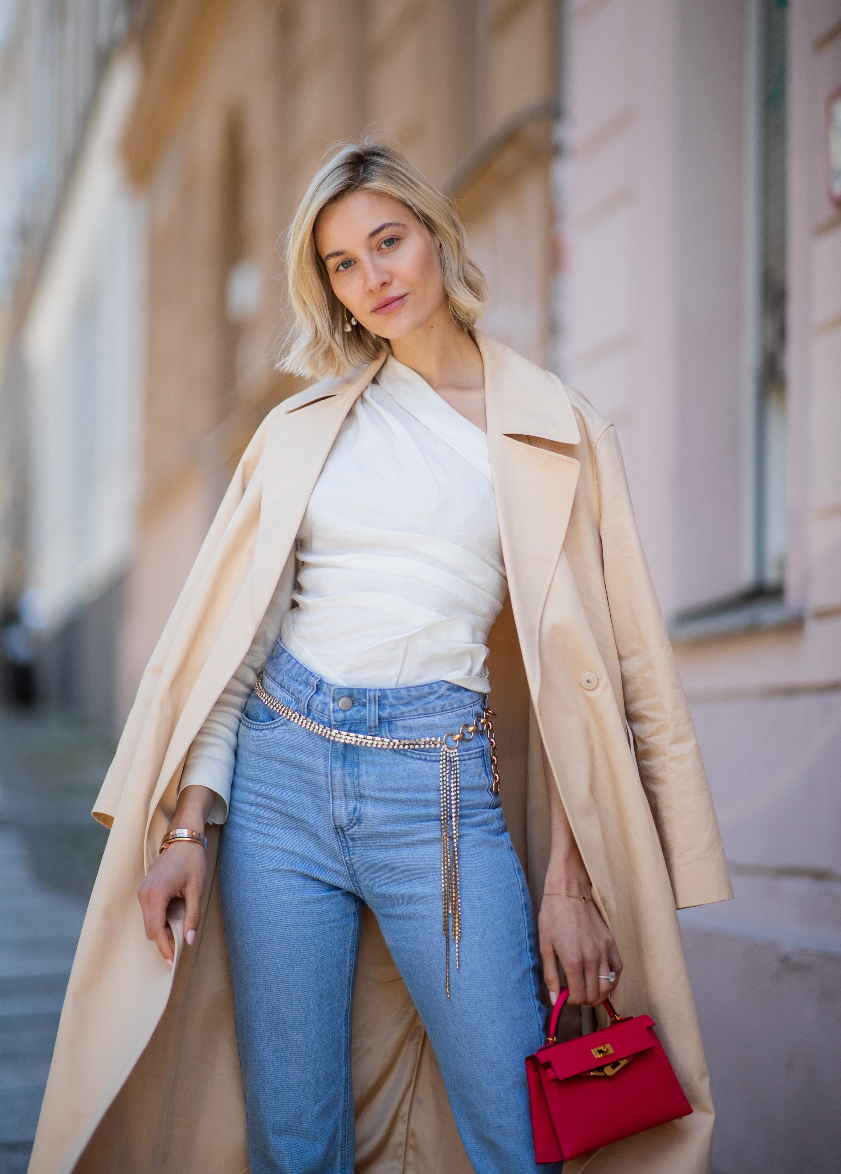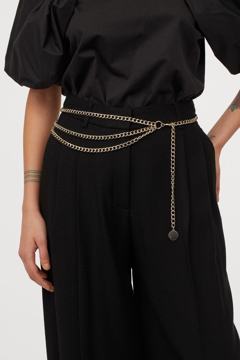 Цепи без сомнений стали главным хитом 2020-го. Как мы их только ни носили: и в качестве украшений — сережек, браслетов, ожерелий и анклетов. И в качестве ремней для сумок или бретелей платьев. Но, пожалуй самым стильным и при этом простым способом стал альтернативный вариант — цепочки, которые стилисты и модные инфлюенсеры сейчас вовсю носят в качестве замены наскучившим поясам.