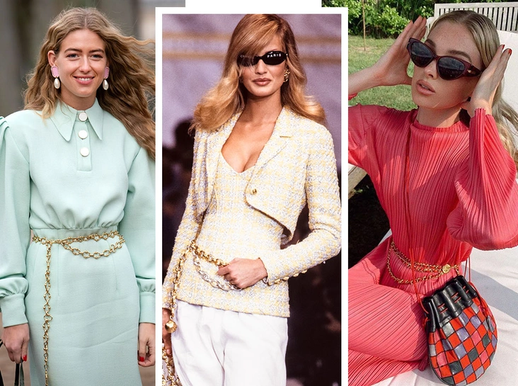 В конце XX века звенящим цепочкам на бедрах пел оды Карл Лагерфельд, который трудился на благо французского дома Chanel в то время и делал цепи главным акцентом многих своих коллекций. Причем кайзер демонстрировал эти аксессуары не только в летних коллекциях, но и в зимних — очередное доказательство тому, что цепи действительно универсальны и пригодятся вам круглый год. Сейчас успех этого аксессуара повторяет его «смена» — креативный директор Виржини Виар, которая на протяжении нескольких сезонов показывает нам разные варианты сочетаний, которые мы с удовольствием претворяем в жизнь.