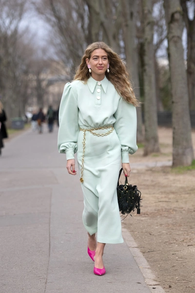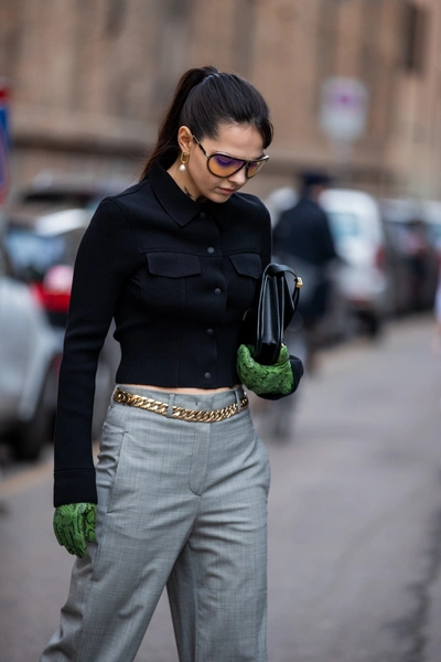 Плюс этой тенденции заключается в том, что пцепи уже выглядят достаточно броскими и не требуют к себе каких-либо модных изысков. Если вы выбираете массивную цепь вместо пояса, вам не требуется перегружать образ другими аксессуарами, вроде акцентных сережек или ожерелий: чем лаконичнее и сдержаннее будет ваш аутфит, тем лучше. Дизайнеры советуют носить такие с лаконичными бланковыми футболками или джинсами, поверх оверсайз-костюмов натуральной палитры, платьев-комбинаций или со сдержанными комбинезонами, где цепи станут ярким акцентом и сделают образ намного интереснее и необычнее.