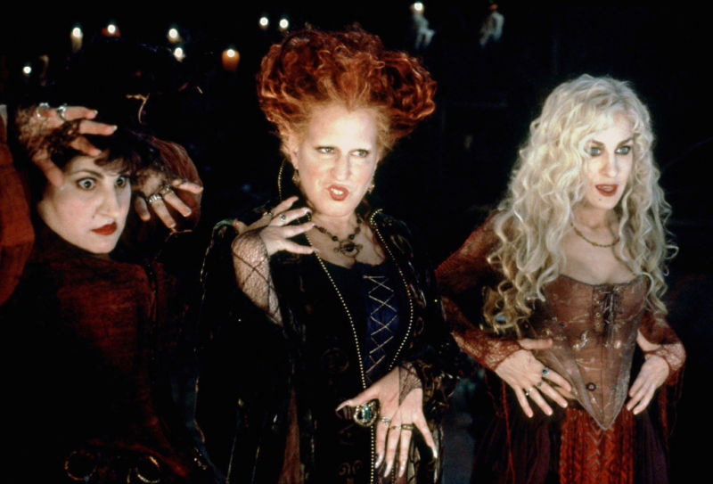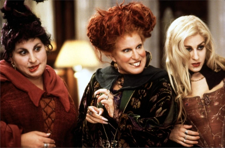Диснеевский фильм 1993 года пересматривают сразу несколько поколений каждый Хэллоуин. Гардероб для героинь создавала художница по костюмам Мэри Фогт. И хотя колдуньи на экране выглядят довольно стереотипно (творческий беспорядок на голове, остроконечные шляпы и пышные платья в пол), на самом деле образы сестер подобраны так, чтобы передать их темперамент и черты характера. Винни (Бетт Мидлер) напоминает классическую средневековую волшебницу (несмотря на Салемские суды над ведьмами, проходившие в конце XVII века), при этом темно-зеленый цвет отлично контрастирует с ее ярко-рыжими волосами. Наряд Сары (Сара Джессика Паркер) — очень воздушный и легкий, имитирующий ее игривость, а образ Мэри выглядит довольно сдержанно, отражая ее склонность к осторожности.