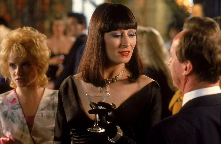 Длинные волосы, точеные черты лица, безупречная фигура — Анжелике Хьюстон суждено было предстать на экране в образе ведьмы. Еще до ее культовой роли Мортиши в ленте «Семейка Аддамс» Хьюстон сыграла настоящую повелительницу тьмы — Великую Верховную Ведьму. Ее ведьминский образ вне времени точно стоит взять за основу для праздничной ночи: драматичное черное платье, множество украшений, бархатные перчатки и легендарная стрижка боб навсегда вошли в историю кино.