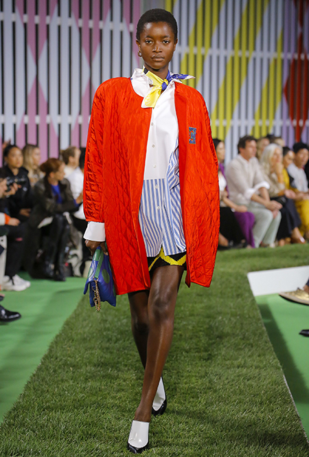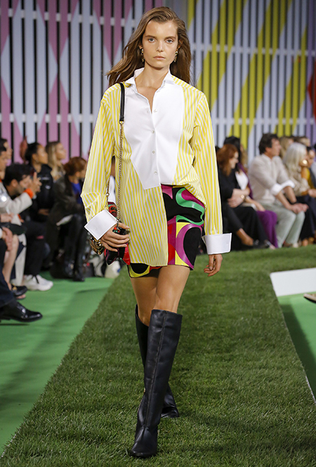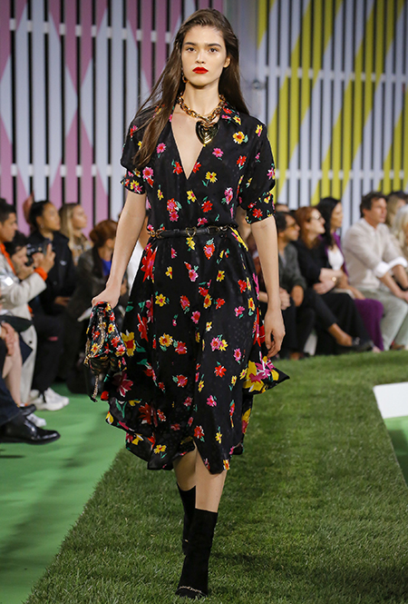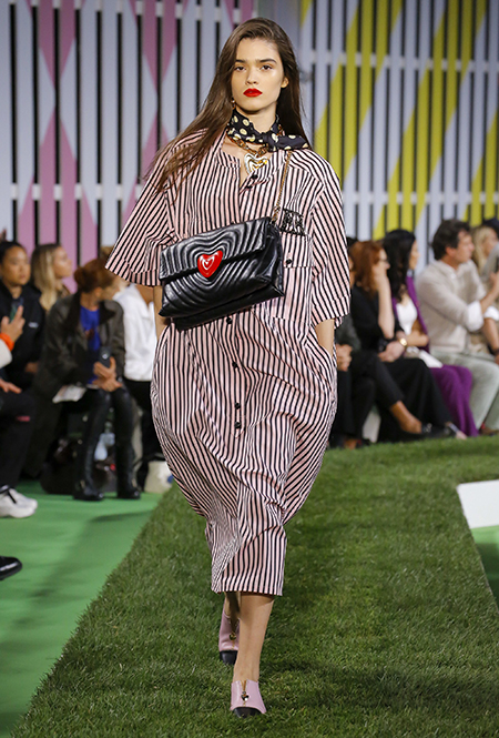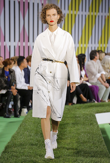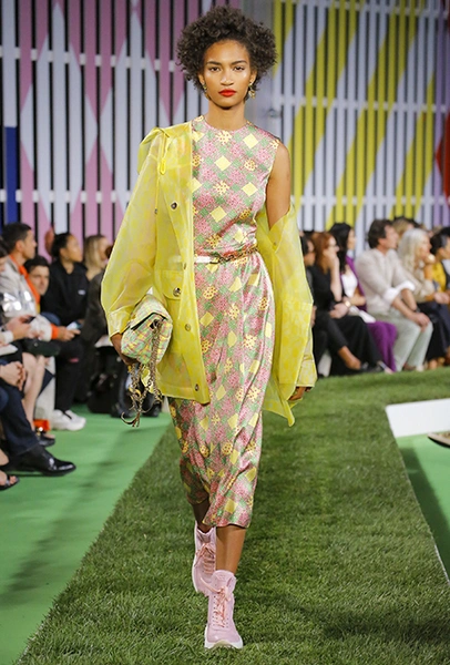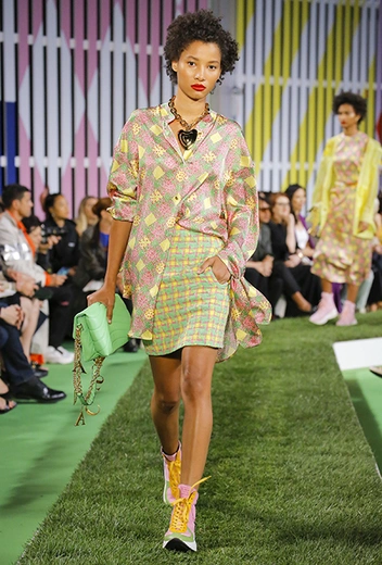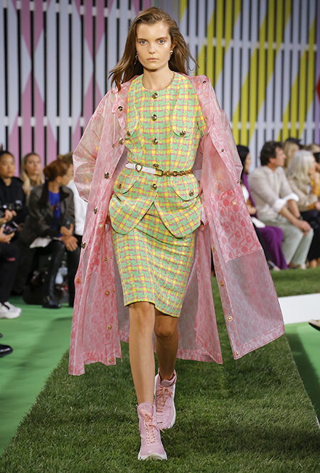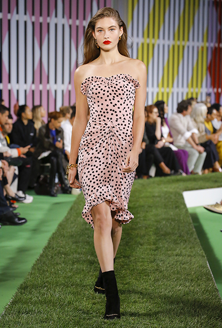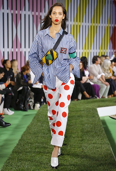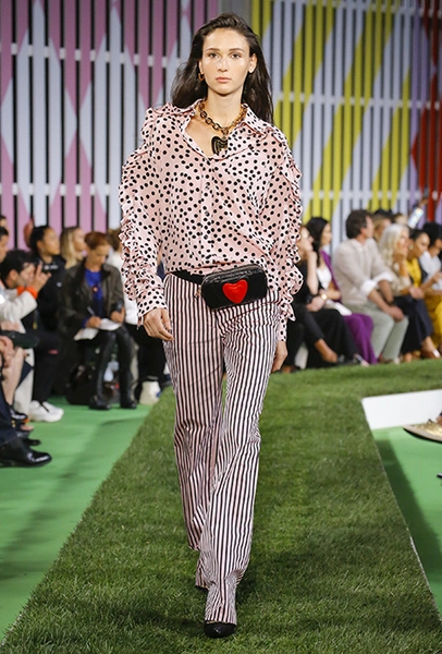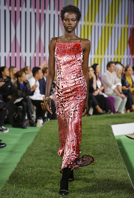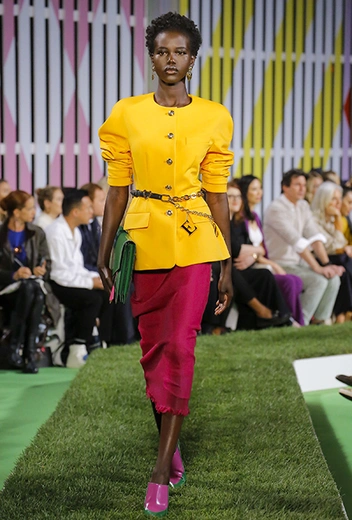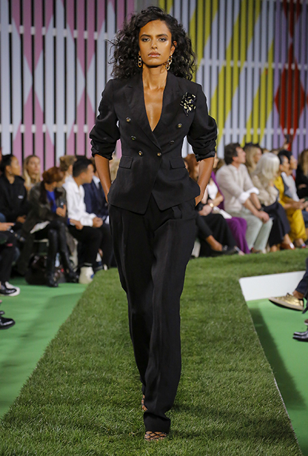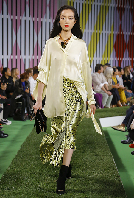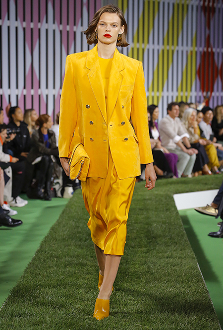 Вдохновение Нейл Слоун искал в архивах домах сразу нескольких декад: конец 70-х, 80-е и 90-е. Маскулинные фасоны жакетов, которые когда-то активно продвигала сама Лэй, не лишены женственности: выполненные из шелка с отливом, с контрастными пуговицами или неожиданных сочных оттенков — так пиджаки на несколько размеров совсем не смотрятся грубо. Слоун смело микусует фуксию с ядовито-зеленым, горох и графику, как это когда-то делали основатели бренда, показывая, что и спустя 40 лет цвет может по-новому раскрасить привычный гардероб. А мы учимся у бренда, как делать это с оглядкой на современность.