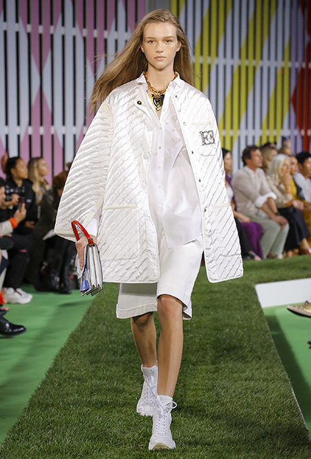 Escada предлагает новый взгляд на привычную логоманию. Их дождевики с монограммами не выглядят нарочито рекламно и не всегда подразумевают под собой громкое заявление или высказывание.