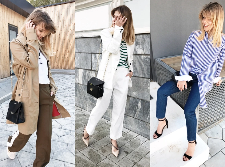 Известные стандарты базового гардероба – белая рубашка, белая футболка, брючный костюм, тренч и идеально сидящие джинсы. Для меня это всегда является отправной точкой при создании casual-образа, но я никогда не следую правилам слепо. Мой совет – составлять базу, которая подходит именно вам, и, конечно, быть смелее! Практически все вещи, которые я использовала в своих образах, можно легко миксовать между собой, расставив стильные акценты с помощью обуви, сумок и других аксессуаров.
