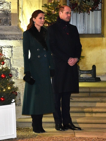Хотя члены королевской семьи не смогли по обыкновению собраться в Сандрингеме на Рождество в 2020 году, Кэтрин и Уильям вместе с другими Виндзорами присоединились к королеве Елизавете на мероприятии, чтобы поблагодарить тех, кто вложил свой труд в пандемийный рождественский сезон. На герцогине было зеленое двубортное пальто с меховым воротником, черные сапоги и перчатки с клатчем в тон и ослепительно сверкающие крупные серьги-капли из королевской сокровищницы.