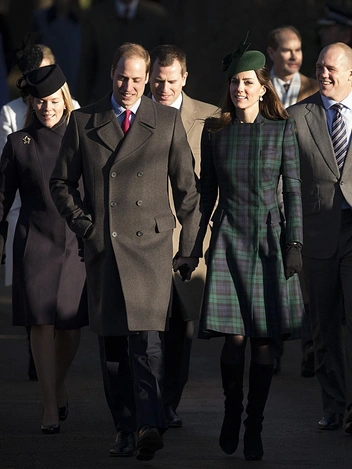 Через два года на праздничную службу герцогиня Кембриджскиая прибыла в тартановом пальто расцветки Black Watch. Свой образ она дополнила замшевыми сапогами и подходящими к ним перчатками, а также компактным головным убором насыщенного зеленого цвета. Герцог трогательно держал жену за руку.