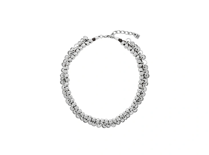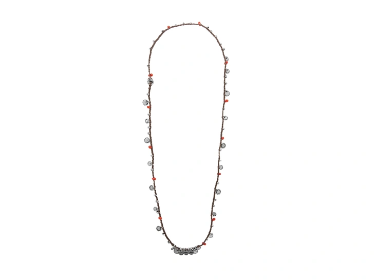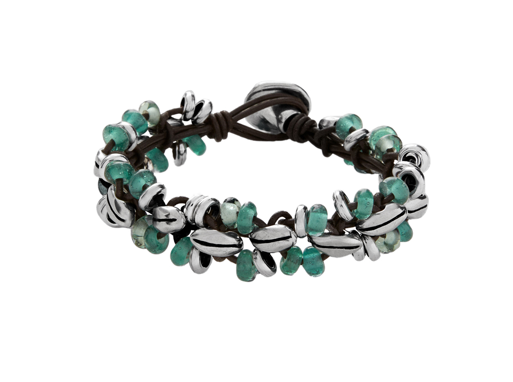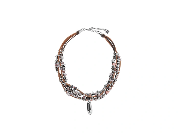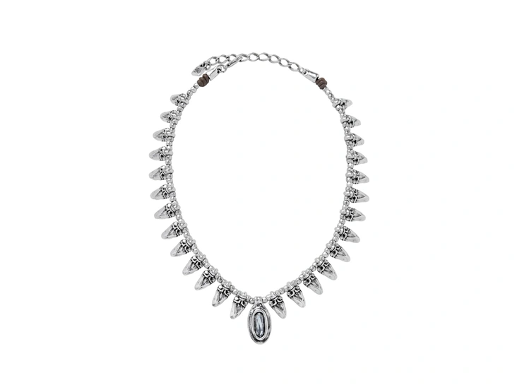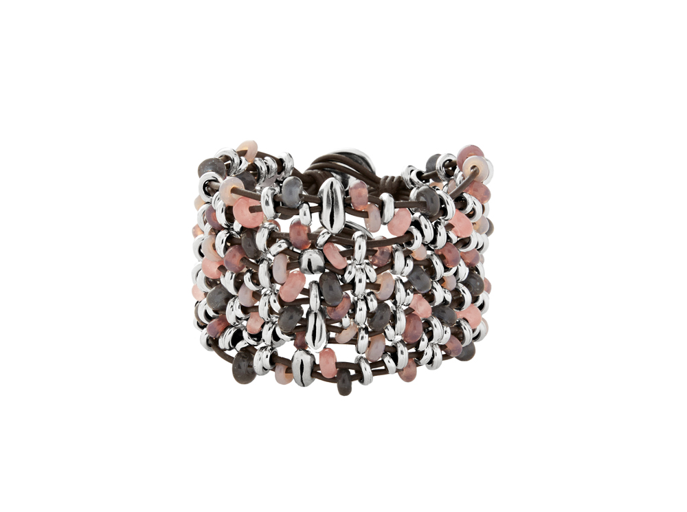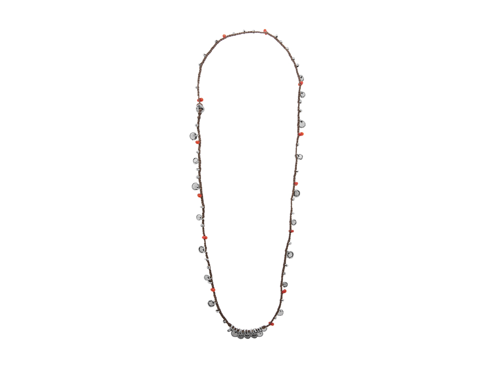 В коллекцию вошли десятки фактурных колец, браслетов и серег из светлого металла и кожи, декорированные камнями цвета нежной бирюзы и лаванды, а также подвесками в виде зерен, колосьев, перьев и зубов диких животных.