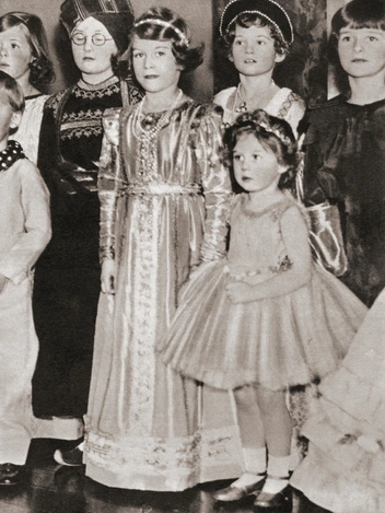 Ранние снимки принцесс Елизаветы и Маргарет в торжественной обстановке в основном относятся к праздникам — либо семейным, либо детским. На одной из них Их Высочества запечатлены на маскарадной вечеринке в 1934 году (читайте также: Маленькая фея: как будущая королева Елизавета выглядела бы на советском утреннике (это винтажное фото вас растрогает)). Другой волшебный образ будущей королевы датируется 1935 годом.