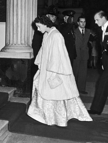 Возможно, одно из самых пышных вечерних платьев Елизаветы публика увидела еще до начала ее правления, на Festival Of Britain в 1951 году. В тот период молодая женщина часто сочетала шелковые бальные платья с мехами