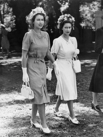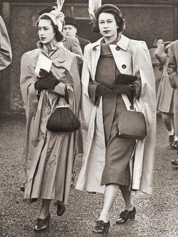 Любопытно, что даже став взрослыми Елизавета и Маргарет продолжили выглядеть как близнецы, одеваясь хоть и в разную, но очень схожую по крою и силуэту одежду и дополняя ее почти идентичными аксессуарами. Принцессы любили хорошо скроенные пальто, светлые дождевики-кейпы, шерстяные костюмы с юбками ниже колена, сумки-коробочки и ридикюли, аккуратные туфли на среднем каблуке и кокетливые шляпки.