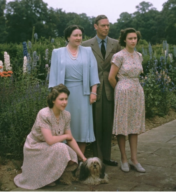 Чтобы защитить наследниц престола, Георг и Елизавета отправили их из обстреливаемого Лондона в старинный замок в Виндзоре. Там девочки провели значительную часть военного времени. В этот период гардероб Елизаветы изобилует идиллическими пасторальными решениями.