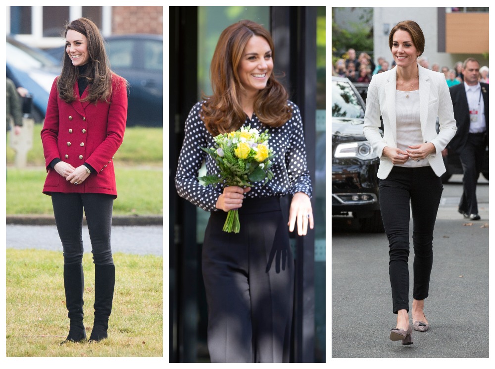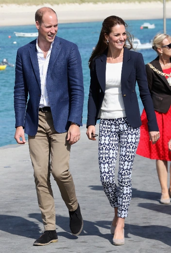 В период с 2014 по 2016 годы Кэтрин нередко появлялась в вещах с «кричащими» психоделическими принтами. Типичный пример — красочные скинни от Gap, которые герцогиня выбрала для посещения Корнуолла в 2016 году. Дань это моде или неоднозначные стилистические решения ее помощников по гардеробу, неизвестно, но даже такие брюки совсем не портят впечатление об образе. Цена их тоже довольно приятная — $39.