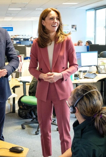 Пожалуй, один из самых впечатляющих и стильных образов герцогини за все время королевской жизни пришелся на непростые времена для монархии. В разгар пандемии коронавируса в Великобритании герцоги отправились в одну из больниц, чтобы поблагодарить врачей за их трудную работу и вклад в борьбу с мировой эпидемией. В тот день Кэтрин заодно порадовала модную публику, которая с нетерпением ожидала новых появлений герцогини. Супруга принца выбрала пыльно-розовый классический костюм от Marks&Spencer, что для ее консервативного гардероба действительно было сродни революции.