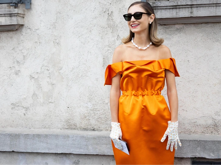 Помимо того, что оттенок оранжевого стал цветом 2024 года Институтом Pantone, он актуален в новогоднюю ночь еще и потому, что ассоциирует себя с фруктовым символом этого праздника — мандарином. Сочный, яркий и теплый как в показах David Koma и JW Anderson. Рекомендуем избегать тотальных оранжевых аутфитов, а сместить цветовой акцент желательно наверх (блуза, пиджак, объемный свитер), либо оставить его в обуви и аксессуарах. Оранжевый гармоничен в сочетании с нейтральным черным: попробуйте примерить черное платье-комбинацию с оранжевым оверсайз пиджаком и массивными аксессуарами.