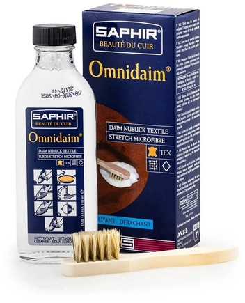 Также у вас под рукой должна быть специальная резиновая щетка, которая поможет снять пыль и расправить ворс. С жирными пятнами бороться будет тальк, который сперва нужно промокнуть салфеткой, а затем обильно посыпать его на участок с загрязнением и оставить средство на несколько часов, после чего убрать остатки щеткой. Есть более легкий путь — чистящий спрей для сильных загрязнений для замши.