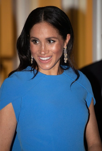 Для премии Меган выбрала платье-карандаш с короткими рукавами ярко-голубого оттенка и синие туфли Manolo Blahnik. И хотя образ был безупречен сам по себе, в этом модном выходе она поддерживала своих британских подруг-дизайнеров, которые не раз выручали Меган во время сборов на важные мероприятия, – Викторию Бекхэм, «ответственную» за платье, и Стеллу Маккартни, чей бренд создавал клатч с мраморным рисунком.