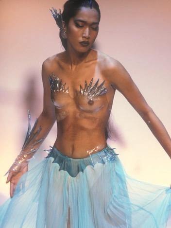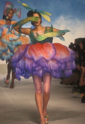 Абсолютным моментом катарсиса во время показа стало платье Chimera, в котором модель Адриана Карембеу походила на гибридное магическое существо, крылатую русалку с оперением всех цветов радуги. Творение, созданное в соавторстве с Жан-Жаком Уркуном и корсетным мастером мистером Перлом, сегодня считается одним из самых дорогих платьев в истории кутюра.