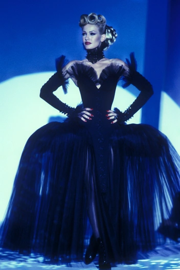Тьерри Мюглер развивал свое авангардистское видение моды в течение трех десятков лет. Все началось в конце 1970-х годов, когда дизайнер попробовал структурировать силуэт, подчеркнув тонкую талию при помощи корсета, сделав широкие плечи, выраженный бюст и бедра. Пропорция быстро стала узнаваемой. Изначально молодой Тьерри хотел стать танцором балета, но в конце концов телесность у него транслировалась через дизайн одежды.
