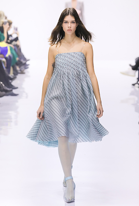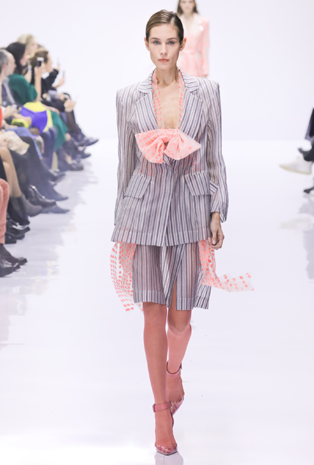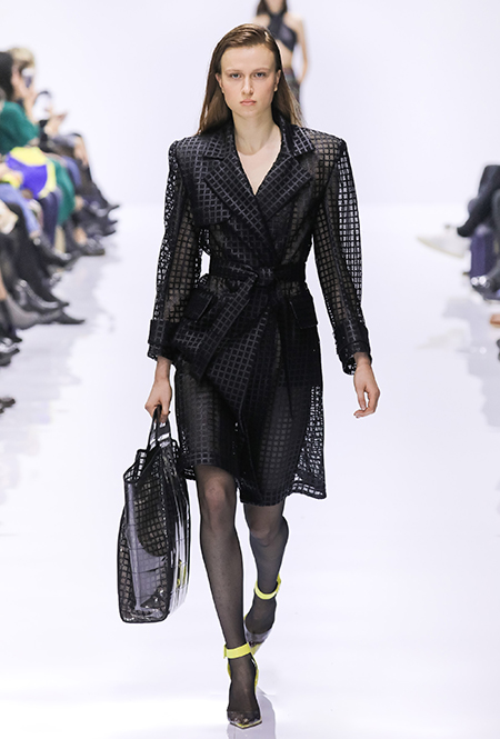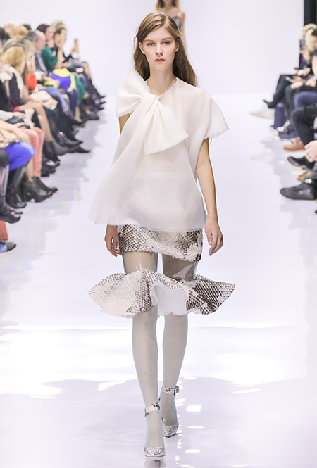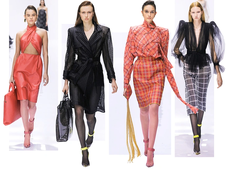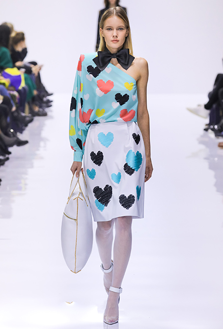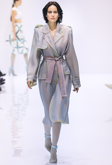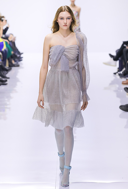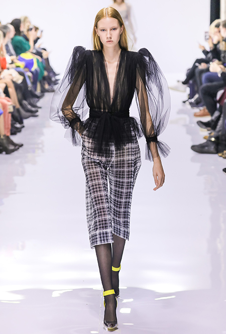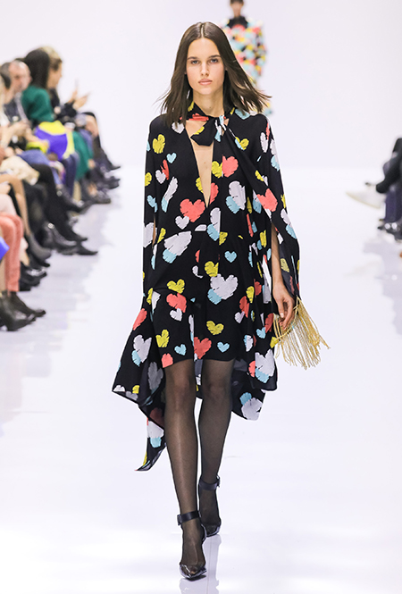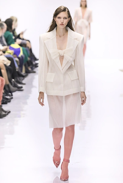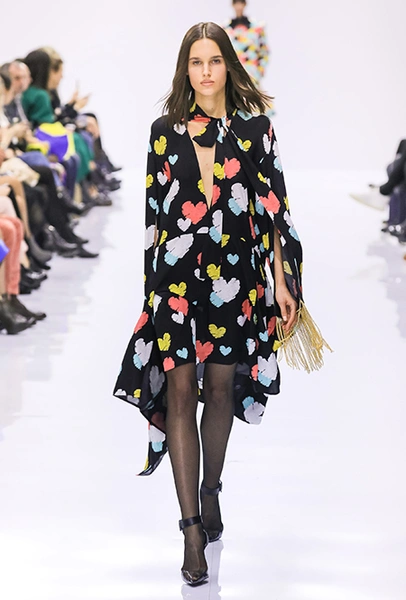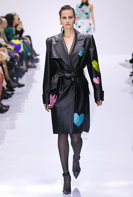По ходу действия дизайнер одевает своих моделей в легкие пальто и кожаные плащи, снабжая их широкими плечами, раскрывающими силу и уверенность в себе современных женщин. Power shoulders, тем не менее, соседствуют с весьма романтичными полупрозрачными блузами и летящими платьями «в сердечки», намекая на двойственность женской натуры и напоминая, что за каждой сильной и независимой женщиной скрывается нежная и ранимая особа. И эта идея роднит коллекцию Овсиева и творчество дома Givenchy, кто бы его ни возглавлял — сам Живанши, Риккардо Тиши или Клэр Уайт Келлер, — больше всего остального.