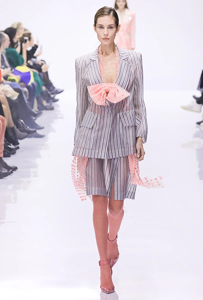 В работе над весенней коллекцией вдохновением для Олега стало творчество Юбера де Живанши. Овсиев, впрочем, выбрал не самый очевидный период творчества короля элегантной моды — 90-е годы, эпоху декаданса бренда Givenchy. В те годы руководство концерна LVMH, владеющего брендом и по сей день, безжалостно критиковало наряды, выходившие под маркой дизайнера. Настолько безжалостно, что в 1995 году Живанши решается уйти из собственной компании на покой и сосредоточиться на работе антрепренера.